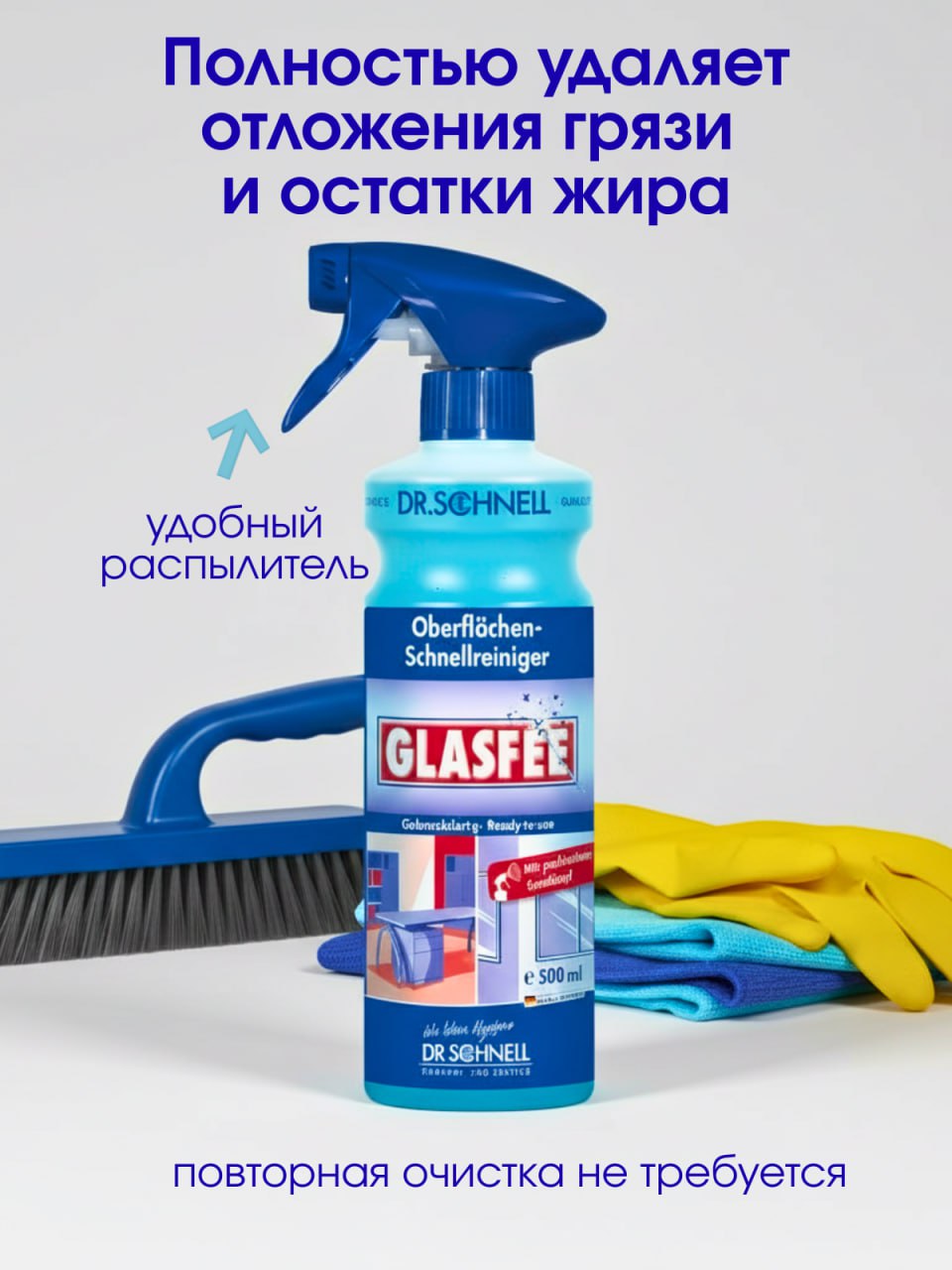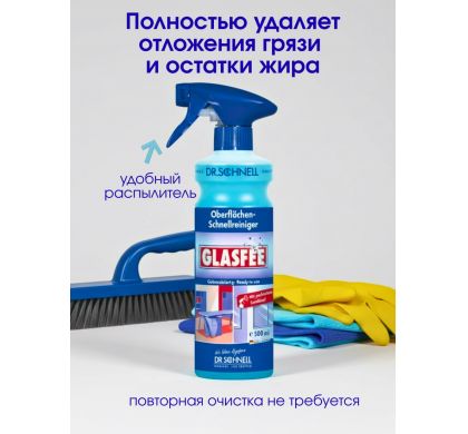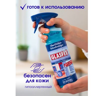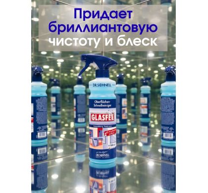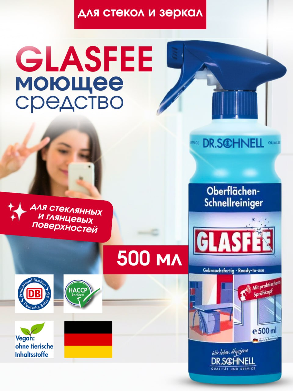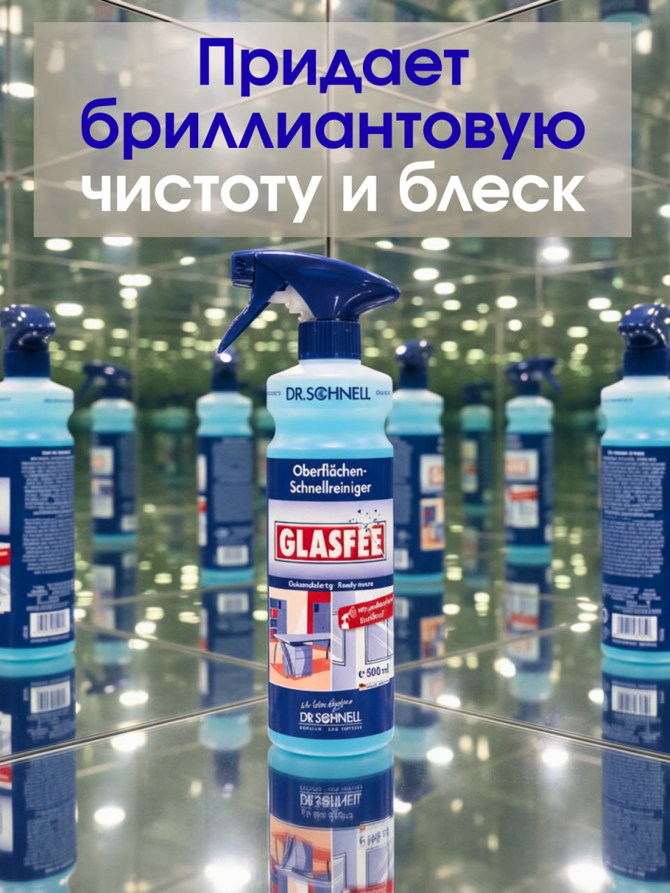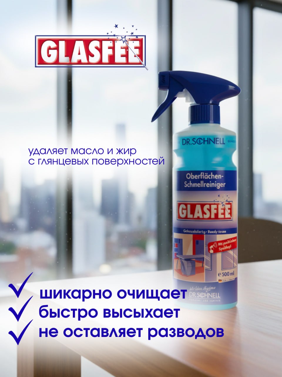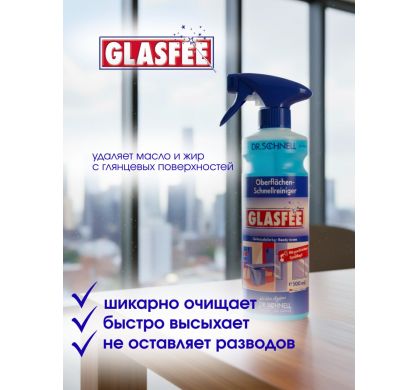 Гласфи - готовое к применению средство DR.SCHNELL для очистки стеклянных и других водостойких поверхностей. Объем: 500 мл. С распылителем.