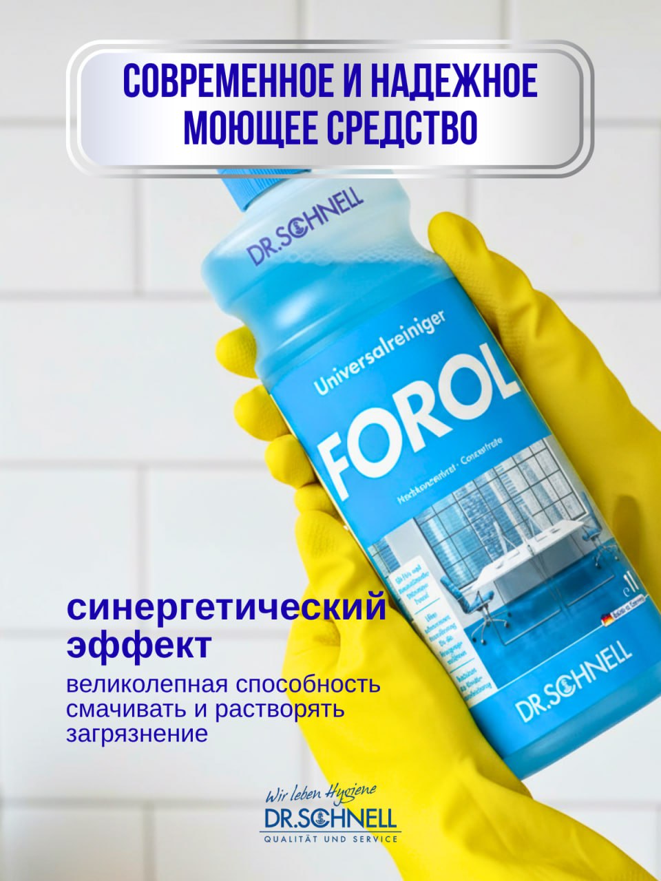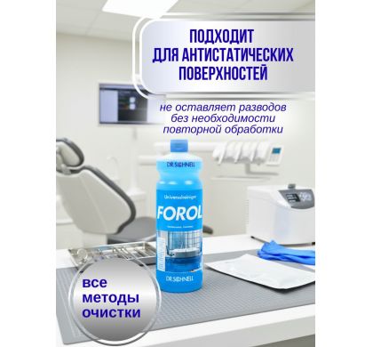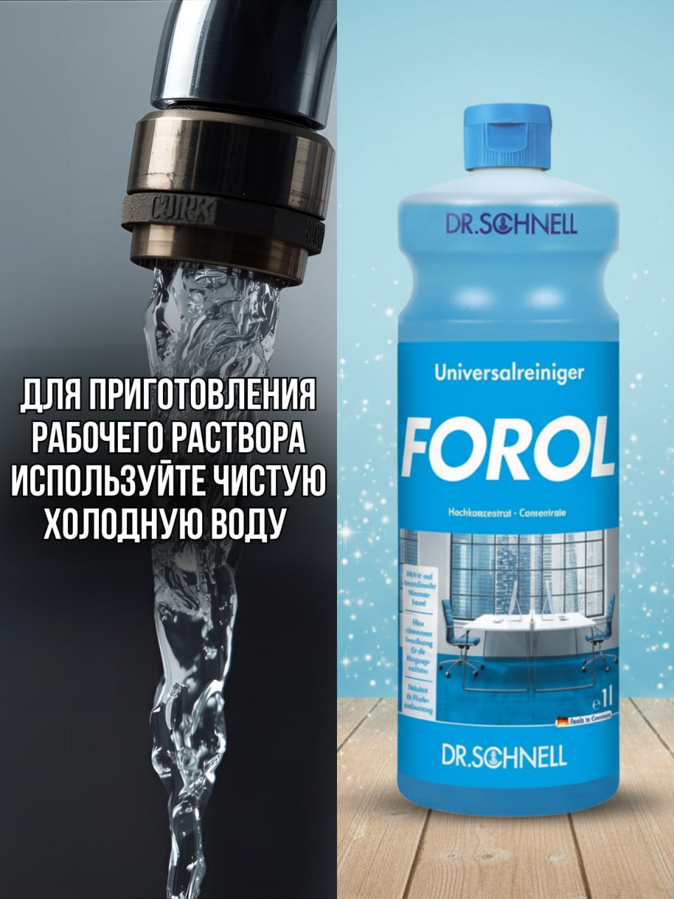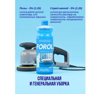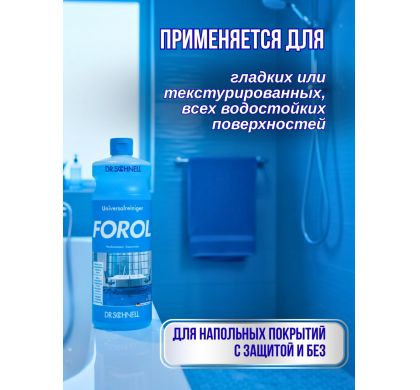 Форол - подходит для всех методов очистки; для всех водостойких поверхностей, гладких или текстурированных, а также напольных покрытий с защитой и без.