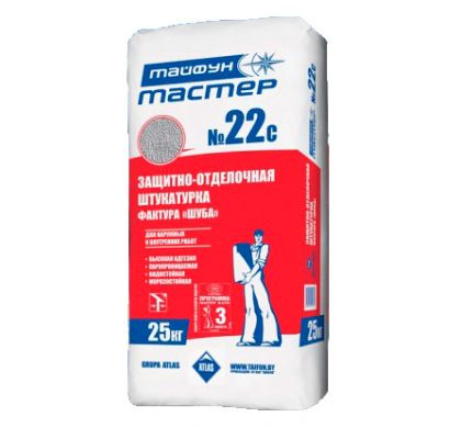 Защитно-отделочная штукатурка ТАЙФУН-МАСТЕР № 22С финишная с фактурой "шуба", наруж. и внутр., 25 кг