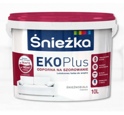 Краска ŚNIEŻKA EKO Plus характеризуется снежно-белым цветом с высоким уровнем матовости. Создаёт стойкое белое покрытие, устойчивое к истиранию и воздействию ультрафиолетовых и UVC лучей.