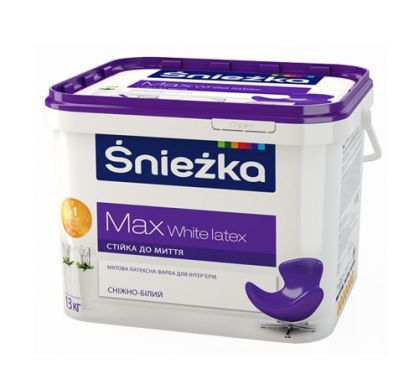 SNIEZKA MAX это высококачественная эмульсионная краска, отличающаяся сильной кроющей способностью, очень высокой экономичностью и белизной покрытия.