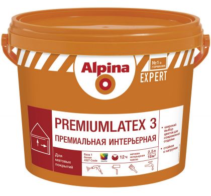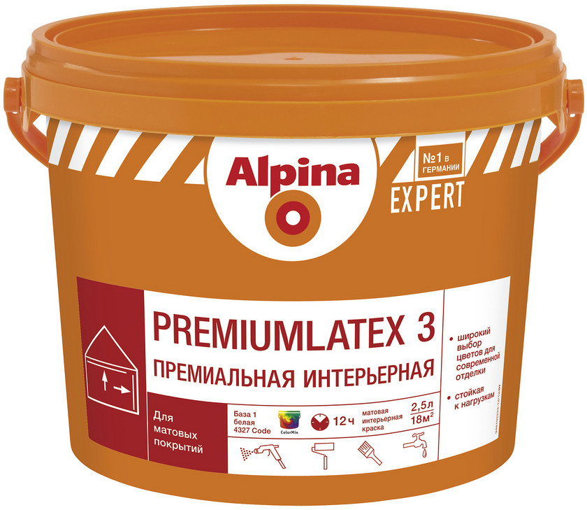 Краска ВД-АК Alpina Expert Premiumlatex 3 База 1, 10 л.