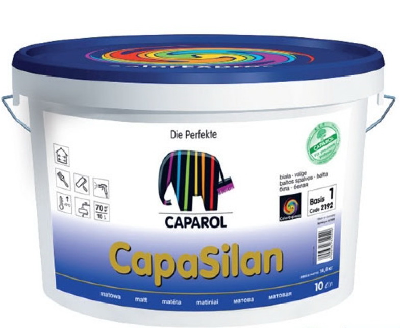 CapaSilan износостойкая минерально-матовая интерьерная краска без растворителей и минимальными эмиссиями с превосходными свойствами. CapaSilan представляет собой новое поколение интерьерных красок, которая благодаря длительному времени раскрытия материала делает возможным великолепное нанесение без видимых мест стыковки отдельных участков на поверхности даже в неблагоприятных условиях освещения (скользящем свете). Предназначена для нанесения с соблюдением установленных санитарных норм, а также в качестве ремонтного покрытия на акустических системах и штукатурках.