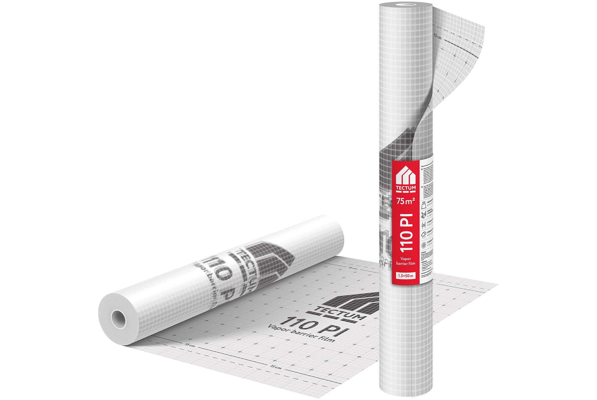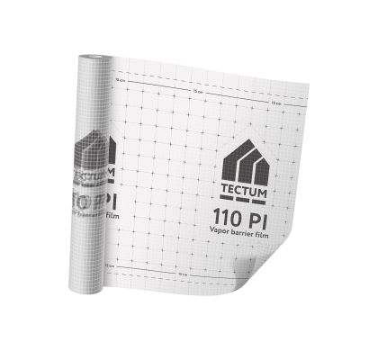 Пароизоляционная пленка Tectum 110 PI состоит из трёх слоёв: два слоя полиэтиленовой плёнки и один слой армирующей полипропиленовой сетки. Армирующая сетка придает пленке высокую прочность, а двустороннее ламинирование обеспечивает хорошие пароизоляционные свойства. Предназначена для создания паробарьера на внутренней поверхности теплоизоляции подкровельного пространства в наклонных и плоских кровлях и в случае внутреннего утепления наружных стен объекта. Одновременно она предохраняет кровельные и другие конструкции от потерь тепла и негерметичности, удерживает тепло во внутреннем помещении и предохраняет от неблагоприятного воздействия сквозняков.