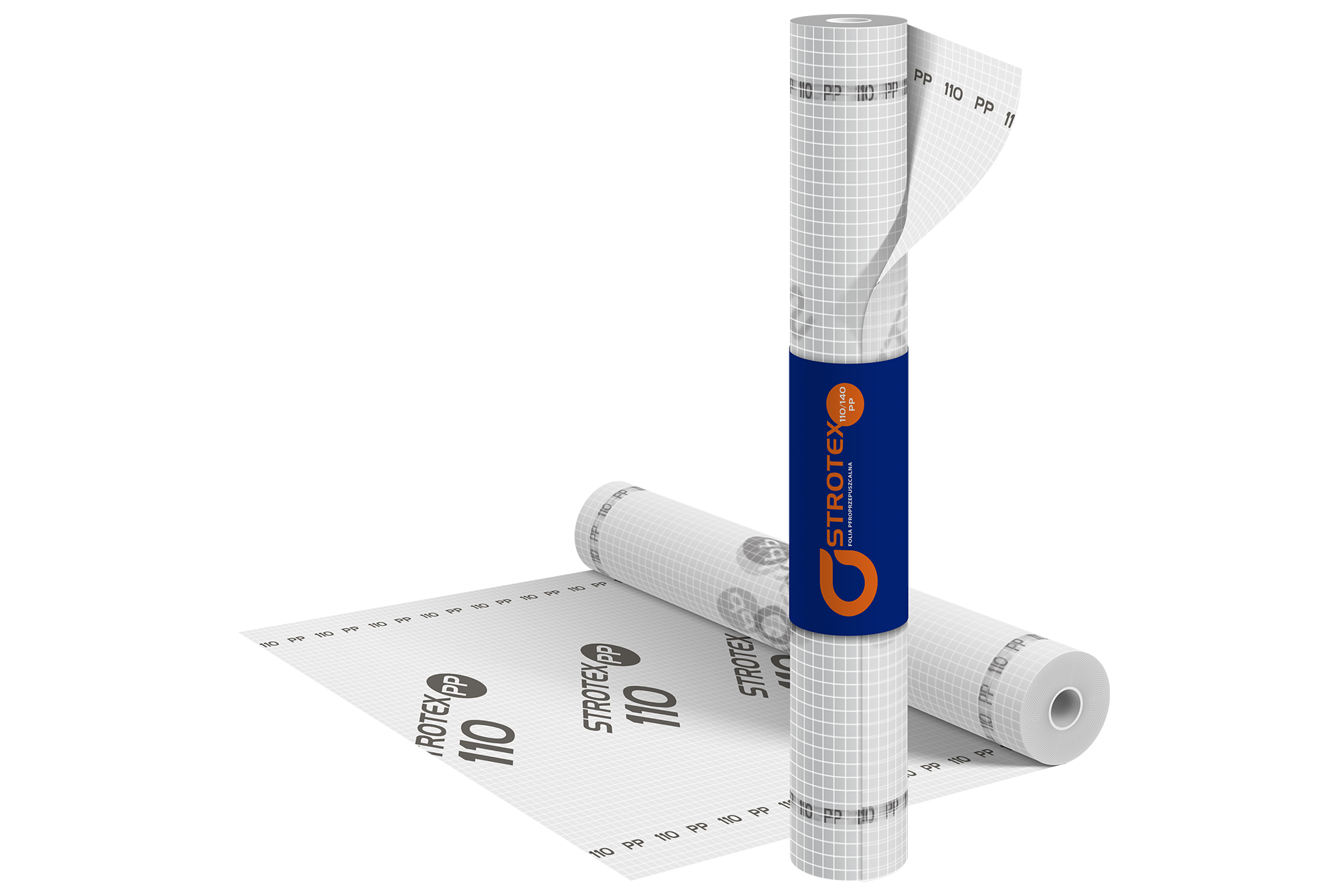 Пленка гидроизоляционная для крыши STROTEX 110 PP - это инновационное трехслойное покрытие, состоящее из армирующей сетки из полиэтиленовых волокон, заключенной между двумя слоями полиэтиленовой пленки.