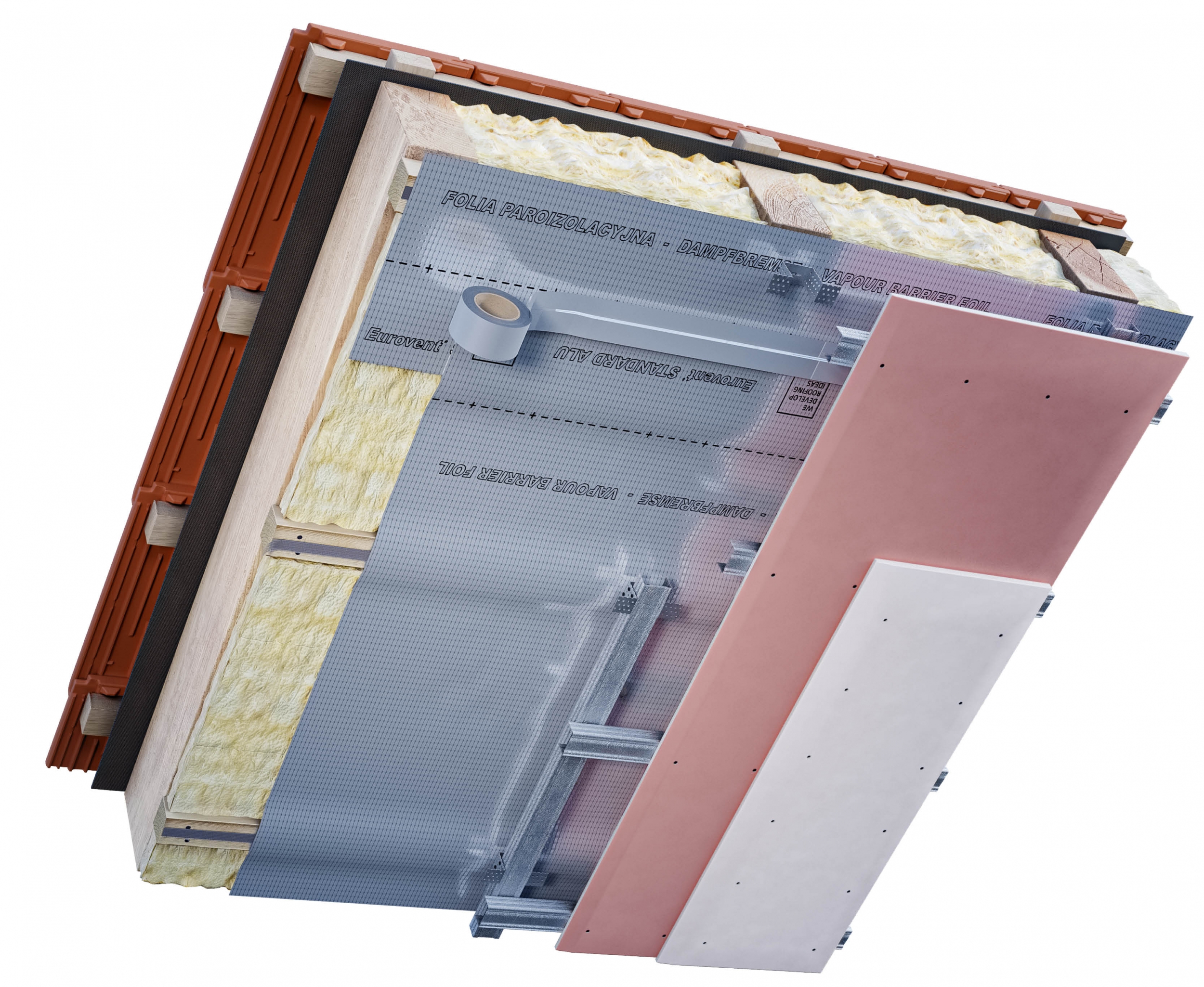 Пароизоляционная пленка Eurovent® STANDARD ALU используется, прежде всего, в качестве изоляционного слоя и регулирует уровень водяного пара при строительстве стен, полов, чердаков, крыш и потолков. Также используется в качестве теплоизоляции и звукоизоляции под отделкой пола, например напольными панелями. При его установке необходимо использовать клейкую ленту Eurovent® ALUFIX для склеивания последующих нахлестов и для герметизации мест стыковки фольги с элементами конструкции крыши.