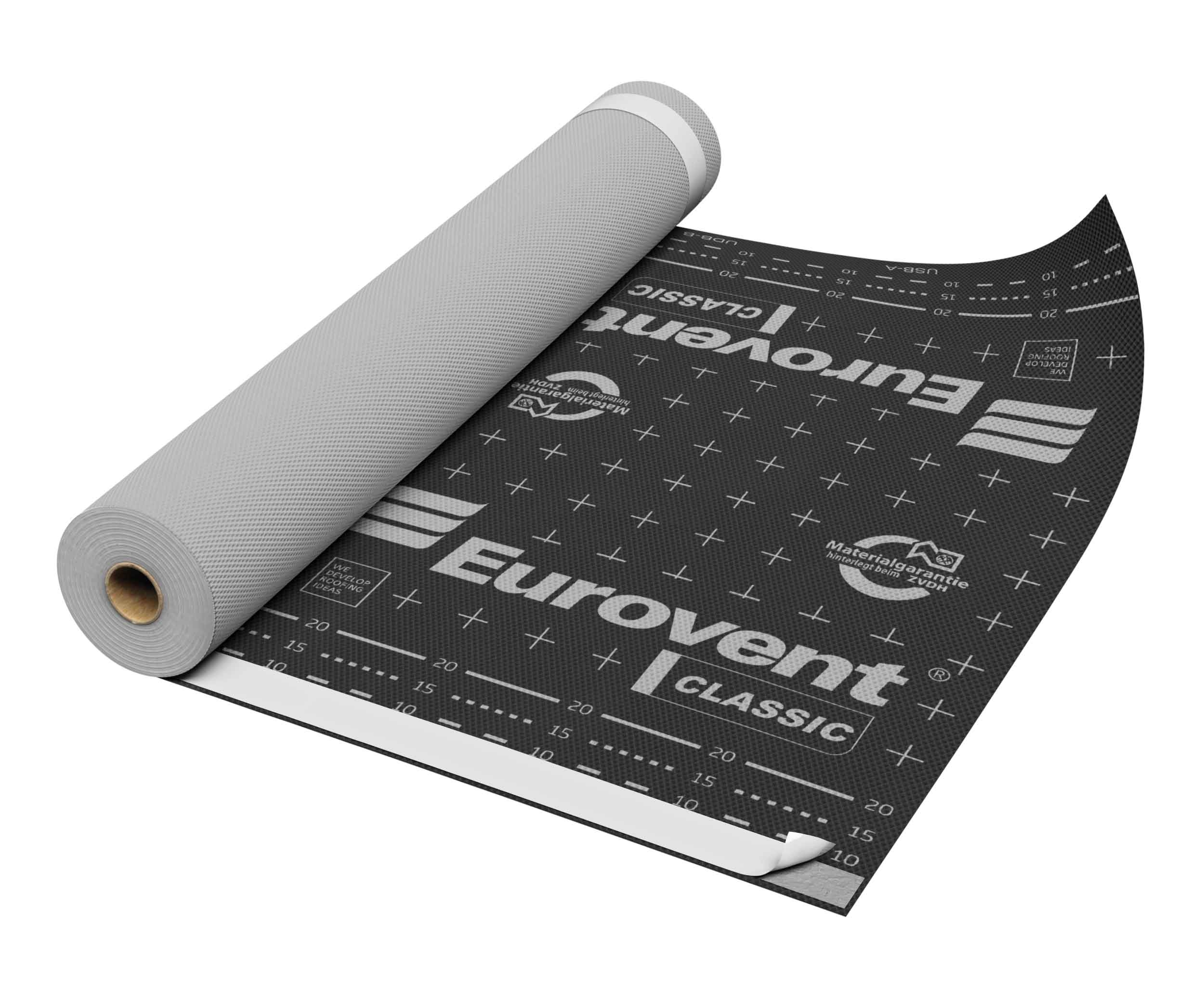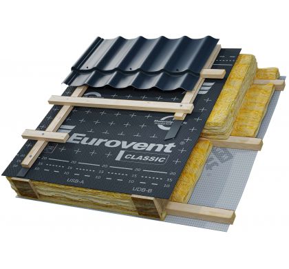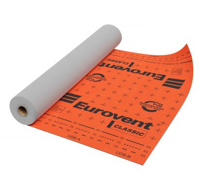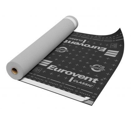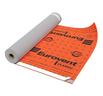 Трехслойная супердиффузионная кровельная мембрана Eurovent® CLASSIC для скатных, изолированных и вентилируемых крыш, тоже на сплошную обрешетку. Подходит для различных типов кровельных покрытий, таких как бетонная черепица, металлическая черепица, а также в качестве ветрозащиты в каркасном строительстве. Доступна с двумя самоклеящимися лентами - системой SK2.