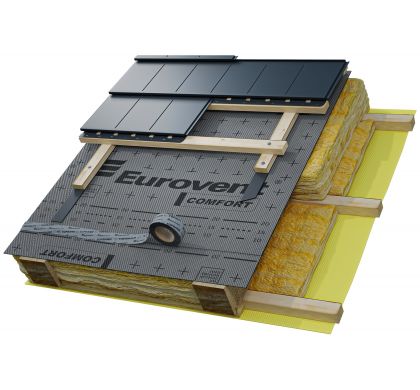 Трехслойная супердиффузионная кровельная мембрана Eurovent® COMFORT для скатных, изолированных и вентилируемых крыш, тоже на сплошную обрешетку и с пологим уклоном. Обладает найвысшей в своем классе устойчивостью к разрыву, поэтому является наичаще выбираемым материалом среди наиболее требовательных кровельщиков. Подходит для различных типов кровельных покрытий, таких как бетонная и керамическа черепица, металлическая черепица, алюминиевых лист. Доступна с двумя самоклеящимися лентами - системой SK2.