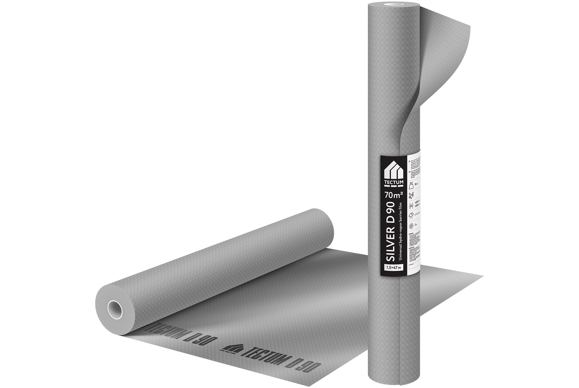 Tectum Silver D 90 — двухслойная универсальная гидро-пароизоляционная плёнка, состоящая из переплетённых полипропиленовых нитей и ламинированная полипропиленовой плёнкой. Отличается превосходной прочностью и универсальностью применения как в качестве гидро-ветрозащиты кровли и фасада, так и в качестве пароизоляции кровли и стен с внутренней стороны.