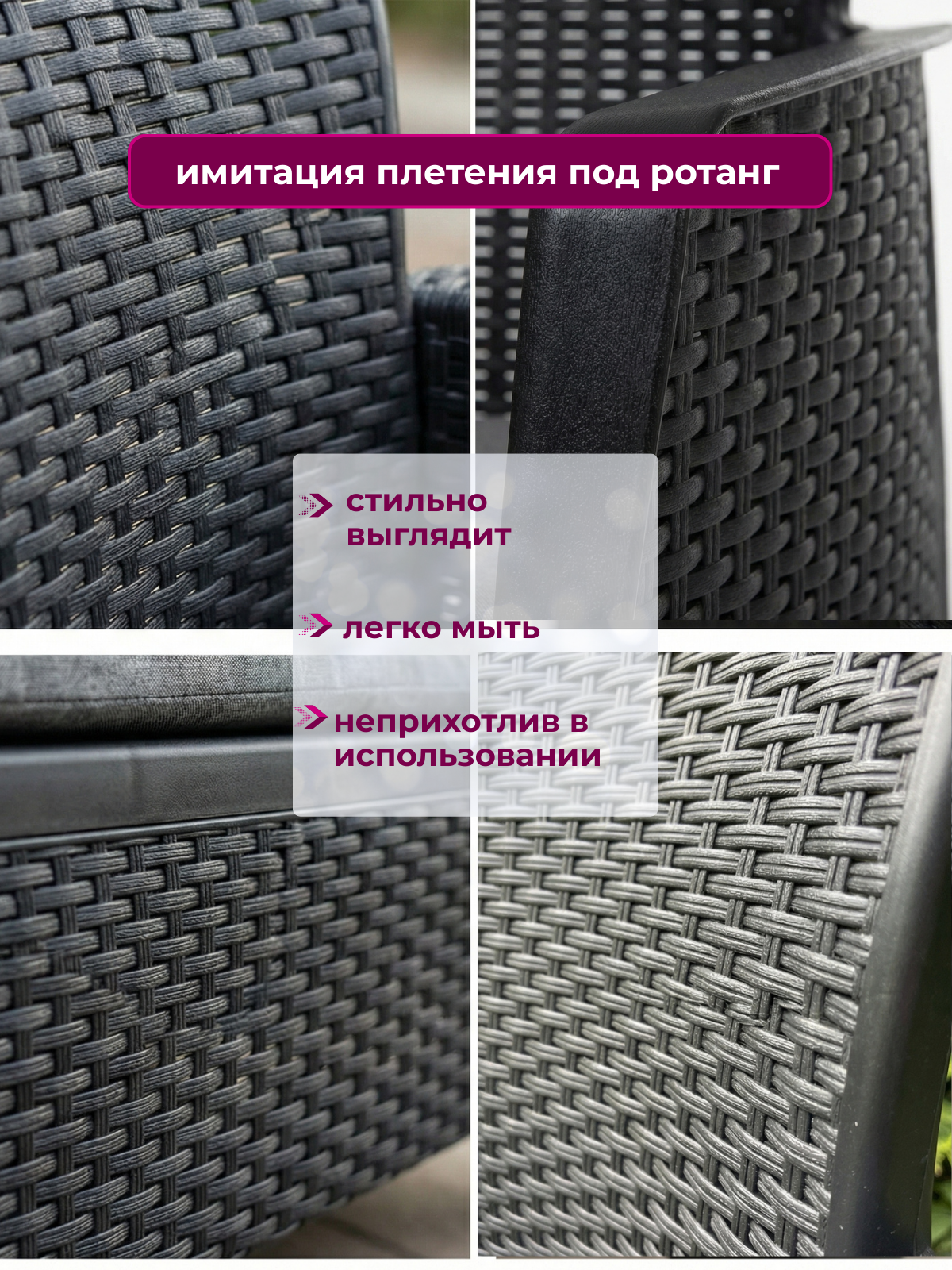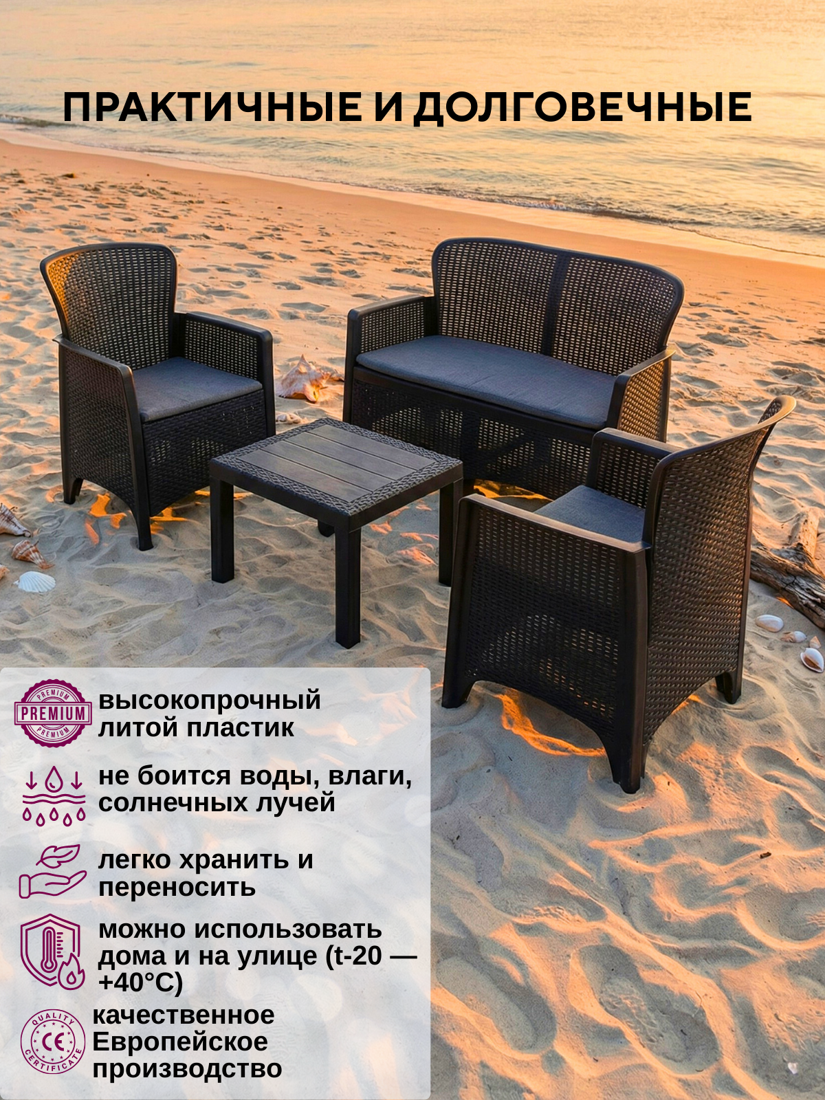 Комплект уличной мебели Mega-Plast Amici, отвечающий европейским нормам качества, создан из высококачественного полимера, безопасного для использования как взрослыми, так и детьми. Благодаря своей небольшой массе, набор легко перевозится в машине. Этот комплект станет превосходным решением для оформления комфортной зоны на вашей даче или приусадебном участке. Пластиковая садовая мебель сочетает в себе эстетичность и функциональность. Полимер – идеальный материал для эксплуатации на свежем воздухе, поскольку он устойчив к воздействию солнечных лучей, осадков и морозов.