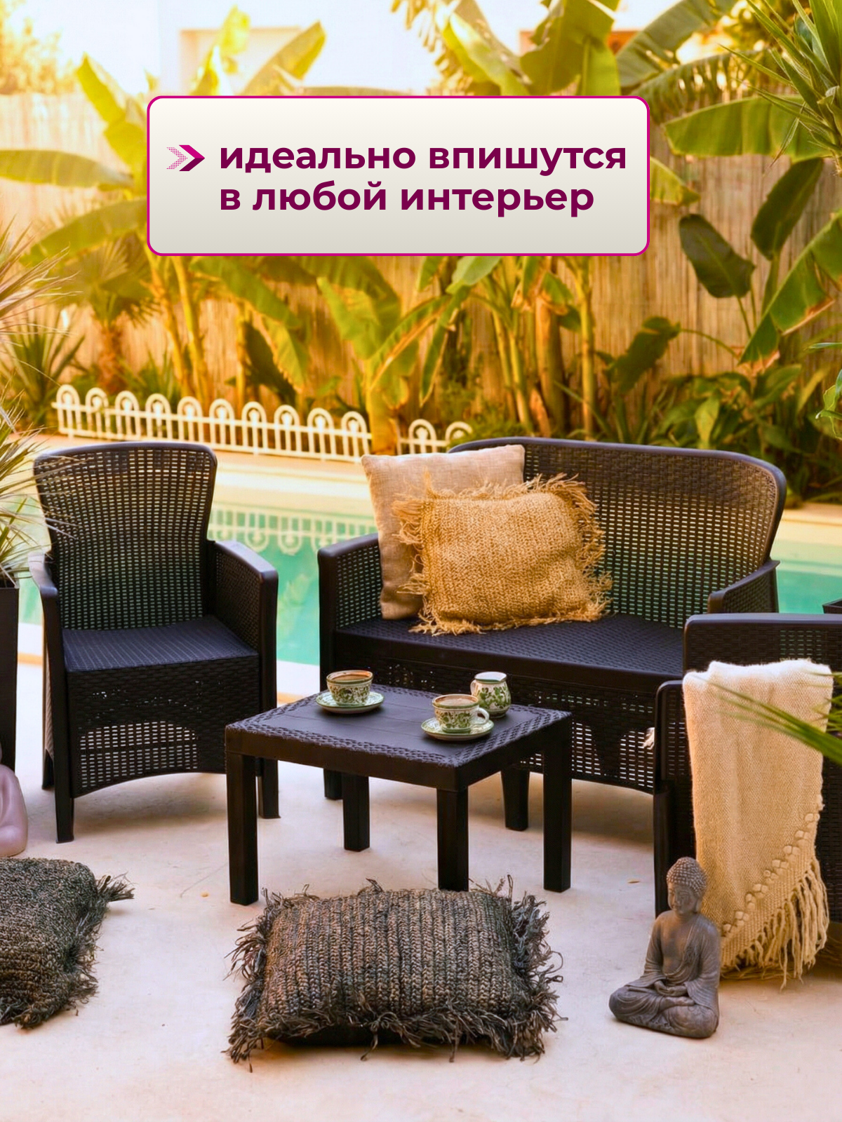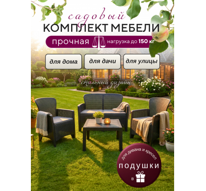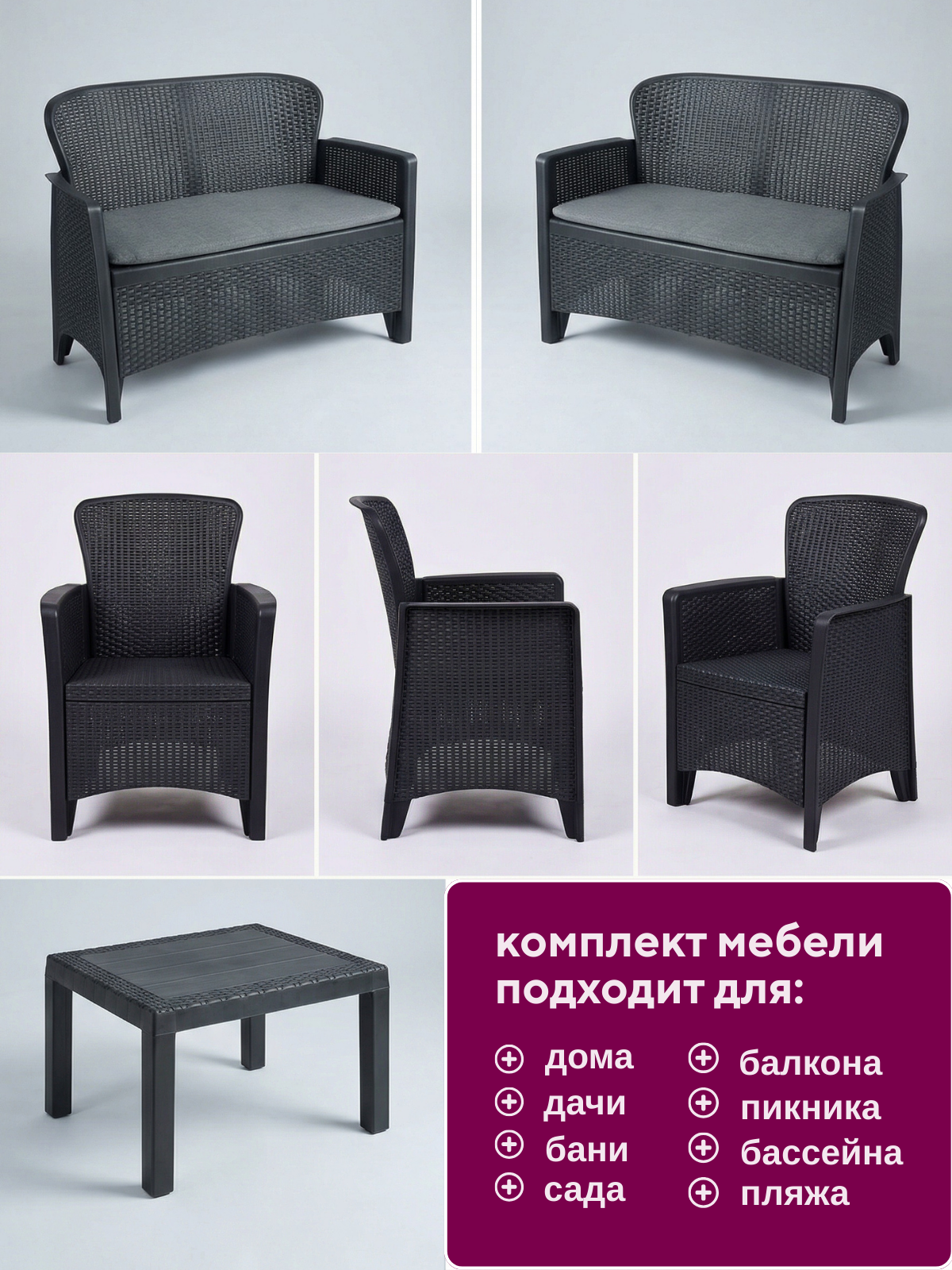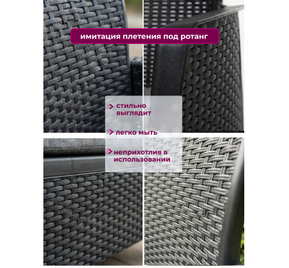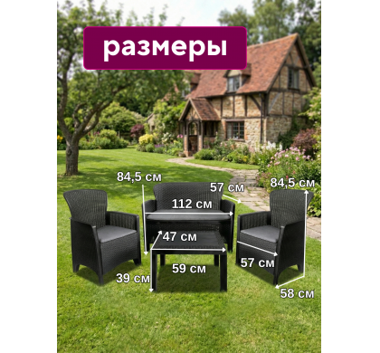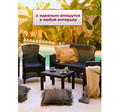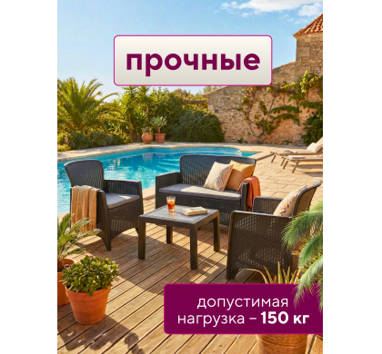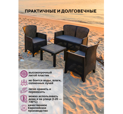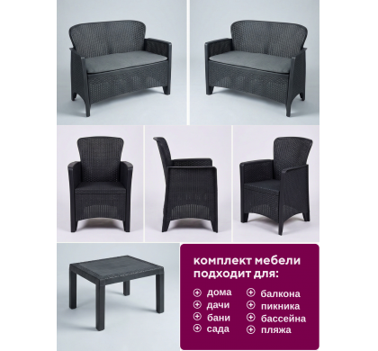 Набор садовой мебели Amici двухместный диван+2 кресла+столик, цвет антрацит, Mega-Plast