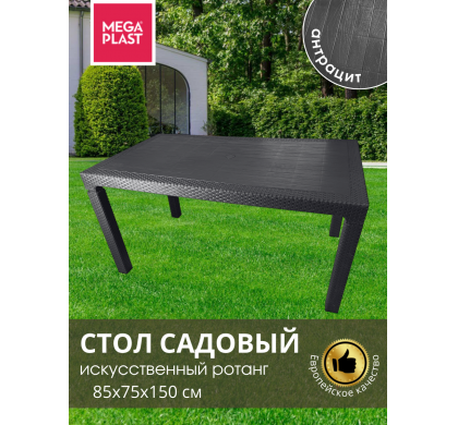 Стол садовый Lux150 85х150х75 см, цвет антрацит, Mega-Plast