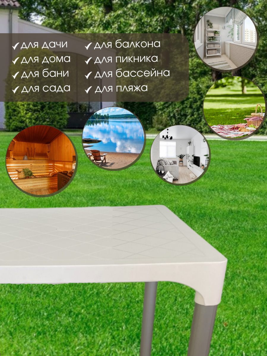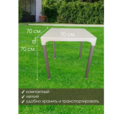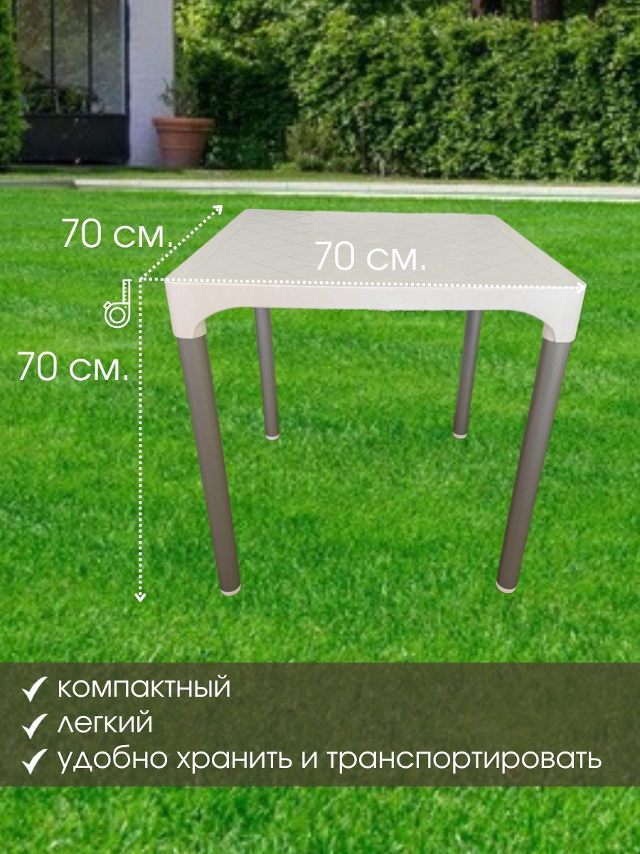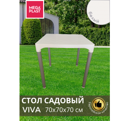 Стол садовый VIVA 70х70х70 см, цвет белый, Mega-Plast