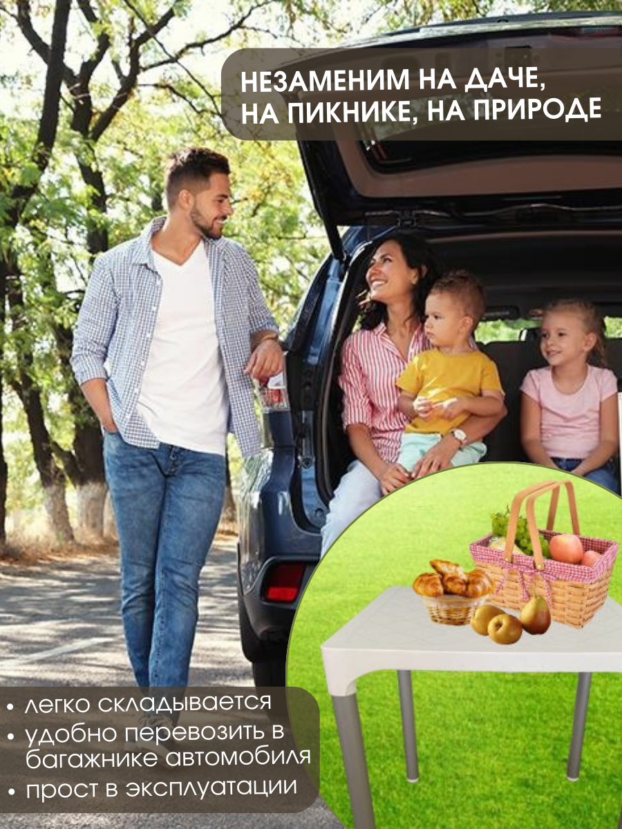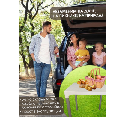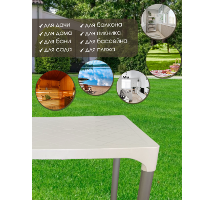 Высококачественный стильный стол Mega-Plast VIVA с пластиковой столешницей и алюминиевыми ножками. Выполнен из качественных материалов, устойчив к солнечным лучам, влаге и перепадам температур. Отличный вариант для дачи, дома, бани, сада, балкона, бассейна, пляжа. Незаменим во время пикника и отдыха на природе. Легко складывается и прост в эксплуатации. Страна производства - Сербия.