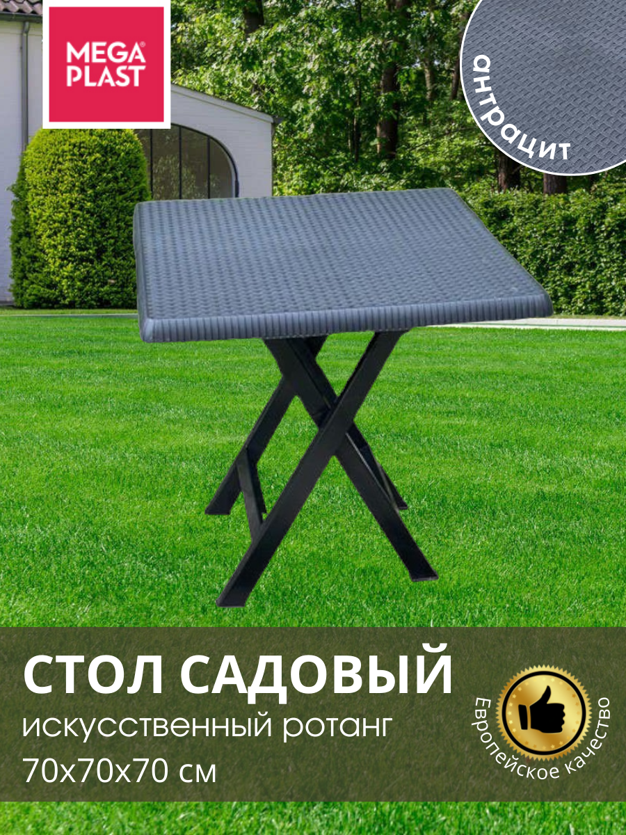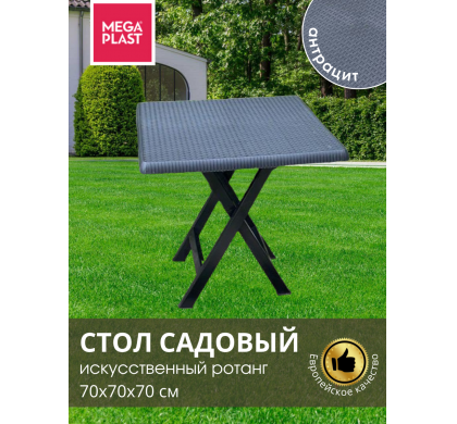 Стол садовый складной LEO 70х70х70 см, цвет антрацит, Mega-Plast