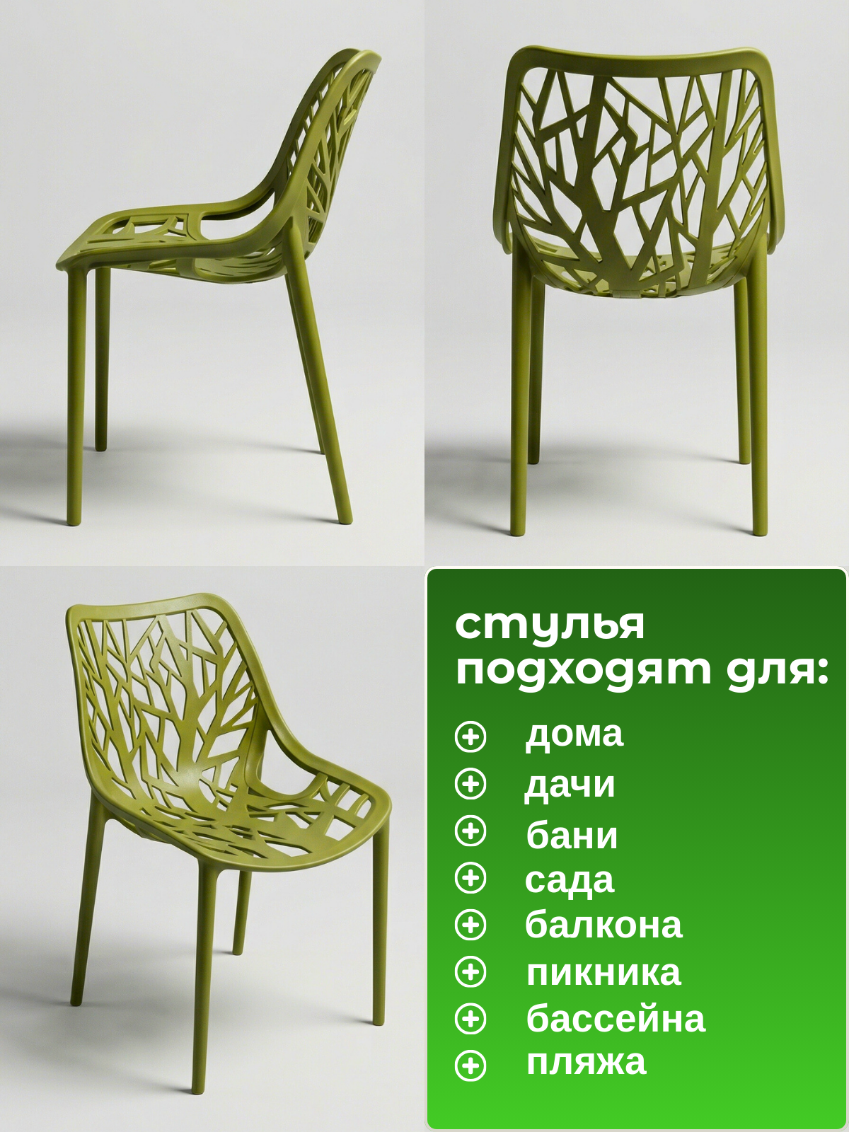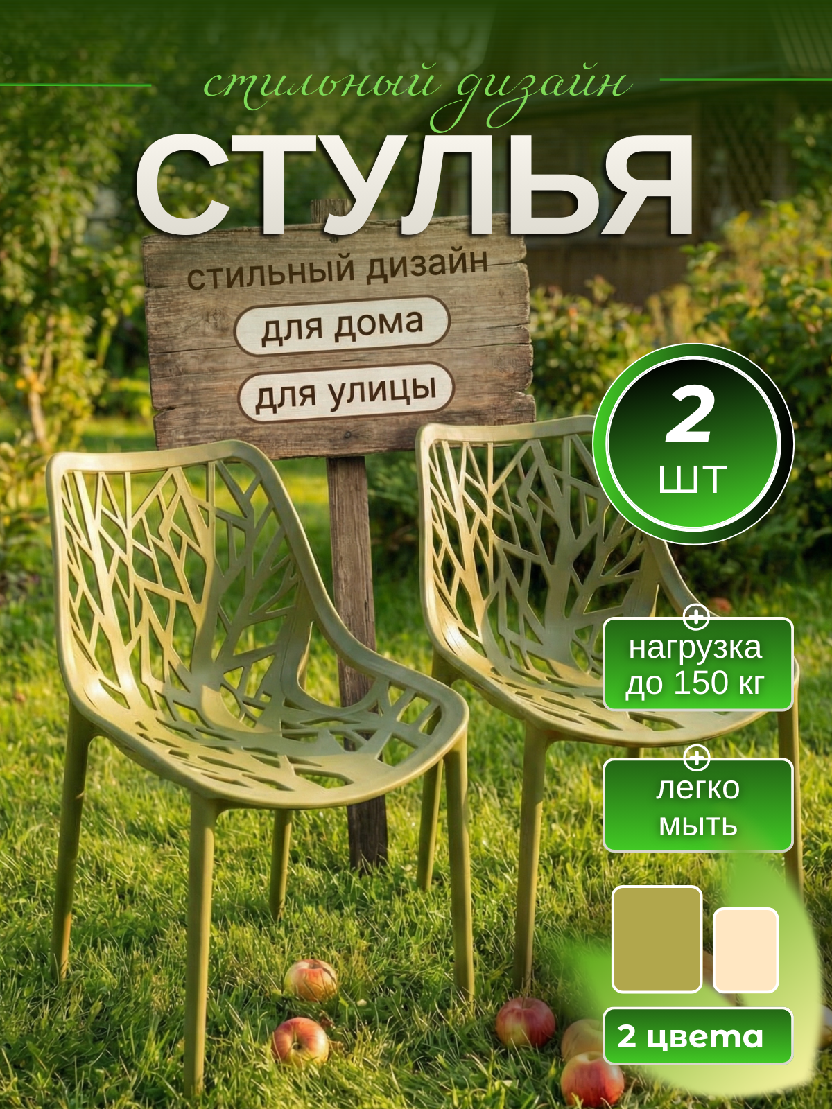 Комплект стульев садовых Forestina 45х50х82 см., цвет зеленый, 2 шт., Mega-Plast