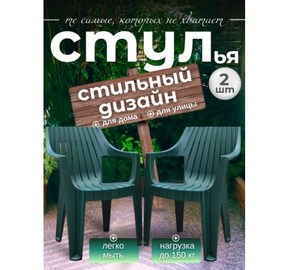 Комплект стульев садовых MODENA 80х50х50 см., зеленый цвет, 2 шт., Mega-Plast