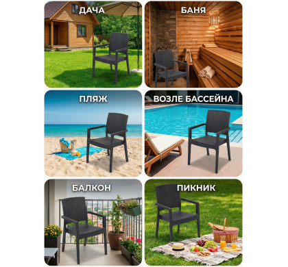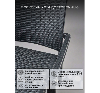 Комплект стульев садовых VENICE 85х53х42 см. 2 шт., цвет антрацит, Mega-Plast