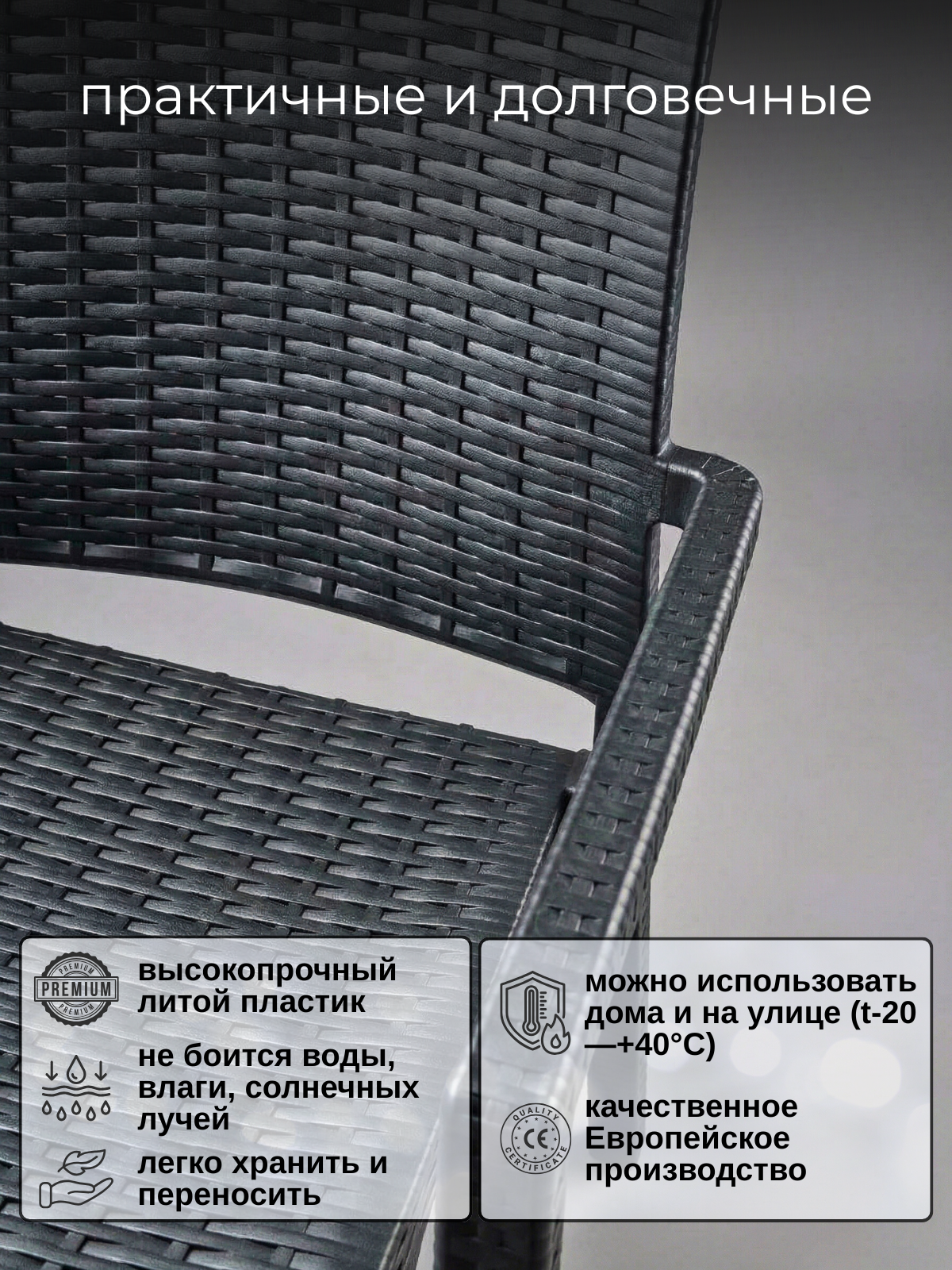 Стул садовый VENICE 85х53х42 см., цвет антрацит, Mega-Plast