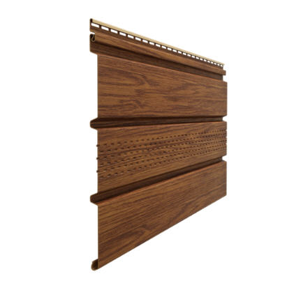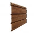 Миндаль - новый сочный оттенок в линейка сайдинга Дёке Люкс, рекомендуем стены такого цвета дополнять подкровельными софитами, однако, хорош он будет и со светлыми стенами.