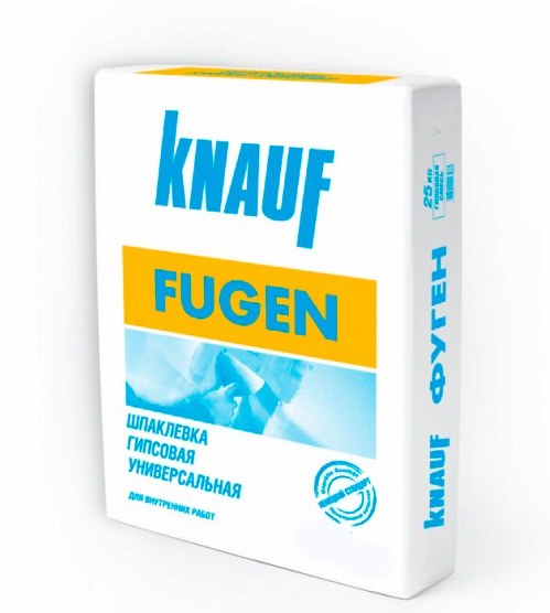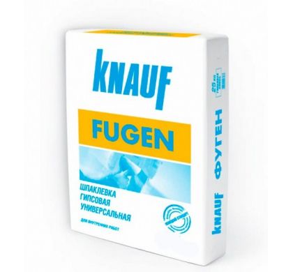 Шпаклевка гипсовая универсальная КНАУФ-ФугенфюллерШпаклевочная сухая смесь КНАУФ Фугенфюллер на гипсовой основе предназначена для проведения внутренних ремонтных работ в помещениях с влажностью, которая является нормальной.Смесь КНАУФ Фуген прекрасно подходит для проведения следующих отделочно-ремонтных работ:- для гипсокартона с полукруглой утопленной кромкой и утопленной кромкой для заделывания в них стыков с помощью серпянки (армирующей ленты);