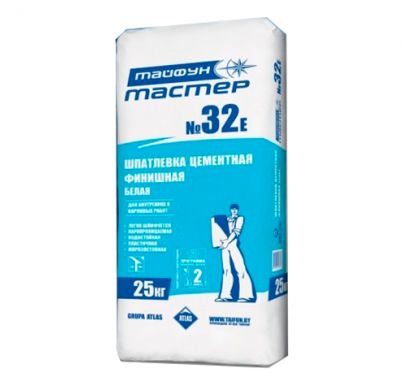 Шпатлевка цементная ТАЙФУН-МАСТЕР № 32е финишная, БЕЛАЯ, наруж. и внутр., 25 кг