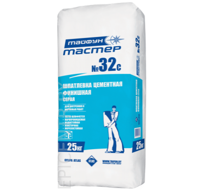 Шпатлевка цементная ТАЙФУН-МАСТЕР № 32с финишная, СЕРАЯ, наруж. и внутр., 25 кг