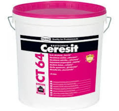 Декоративная акриловая штукатурка Ceresit CT 64 предназначена для декоративной отделки поверхностей внутри и снаружи зданий, по бетонным, подготовленным кирпичным, оштукатуренным основаниям и в системах теплоизоляции фасадов, а также внутри помещений по основаниям из гипса, гипсокартона, древесностружечных плит (после обработки их грунтовками Ceresit CT 17 и Ceresit CT 16). Нельзя применять для отделки цоколя.