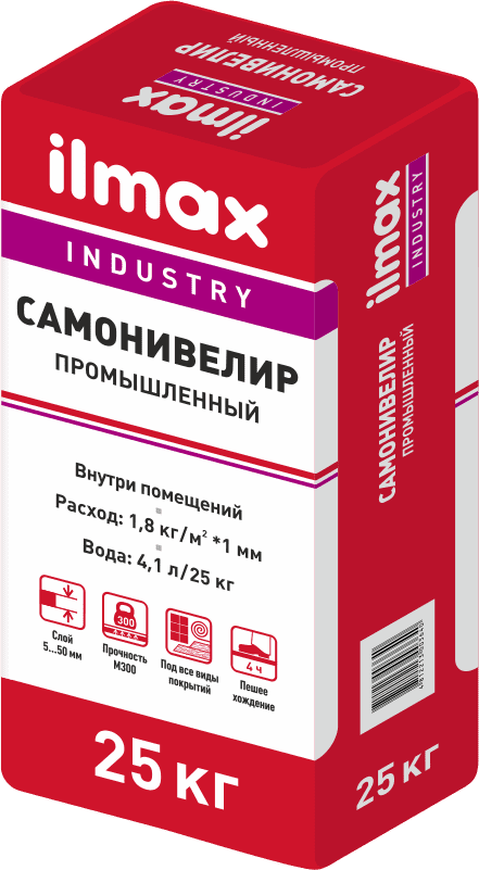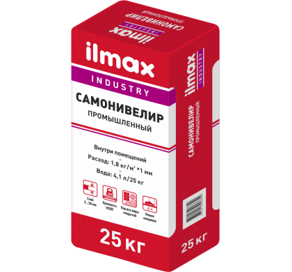 ilmax industry самонивелир промышленный предназначен для выравнивания высокопрочных минеральных оснований в помещениях, где осуществляется движение транспортных средств: гаражах, мастерских, складских и производственных помещениях. Используется по основаниям из бетона, цементно-песчаных стяжек, в том числе с подогревом. ilmax industry самонивелир промышленный может использоваться для выравнивания минеральных оснований, перепады которых составляют 5…50 мм под различные виды напольных покрытий: полиуретановые покрытия и пропитки, эпоксидные покрытия, паркет и другие бытовые напольные покрытия.