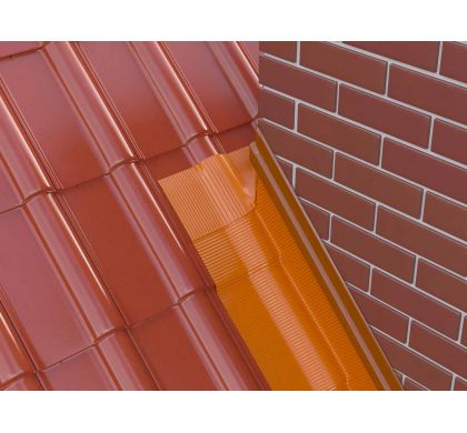 Благодаря тому, что лента гибкая и имеет специальный клеевой слой, крепление получается очень герметичным, долговечным и обеспечивает надежный переход от стены или трубы к кровле. Но стоит обратить внимание, что температура нанесения и хранения ленты составляет не менее 5°С. В противном случае поверхность примыкания необходимо нагреть до требуемой температуры (например, с помощью технического фена).