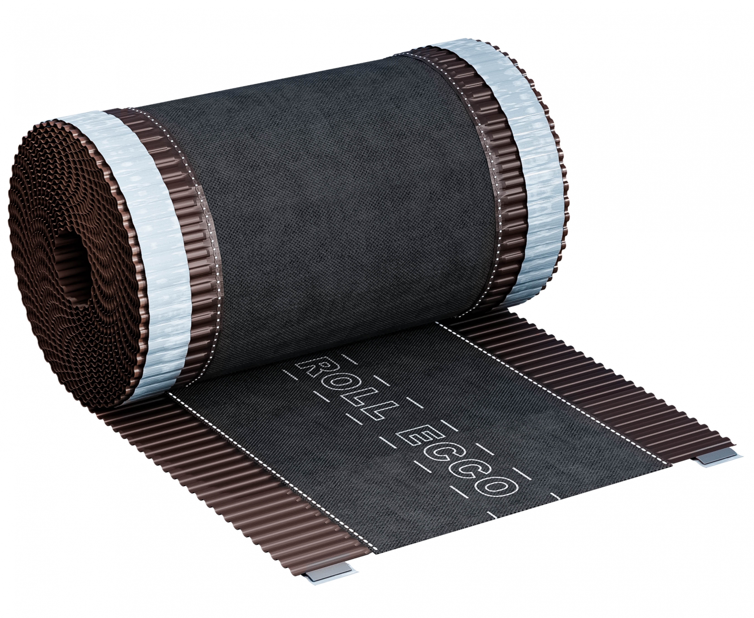 Коньковая лента Eurovent® ROLL ECCO используется в качестве вентиляционного и защитного элемента для коньков и косых хребтов. Защищает поверхность кровли со стороны конька от снега, дождя, влаги, пыли и грязи. Подходит для почти всех видов кровли - керамической, бетонной, металлочерепицы, трапециевидных листов, профилированных алюминиевых листов и т.д.