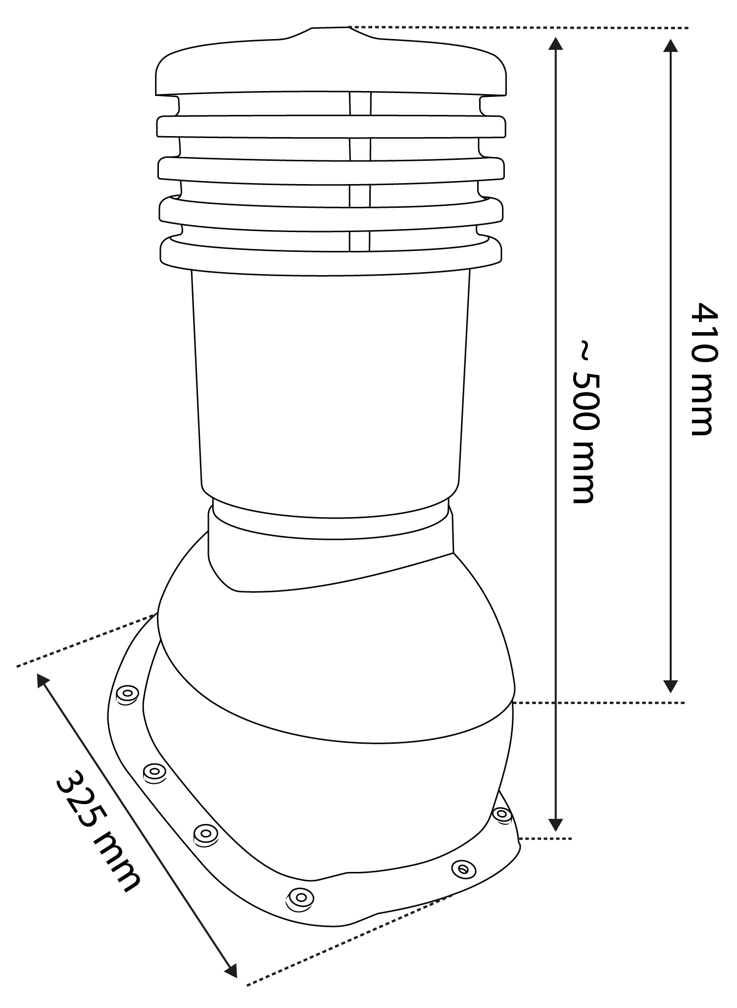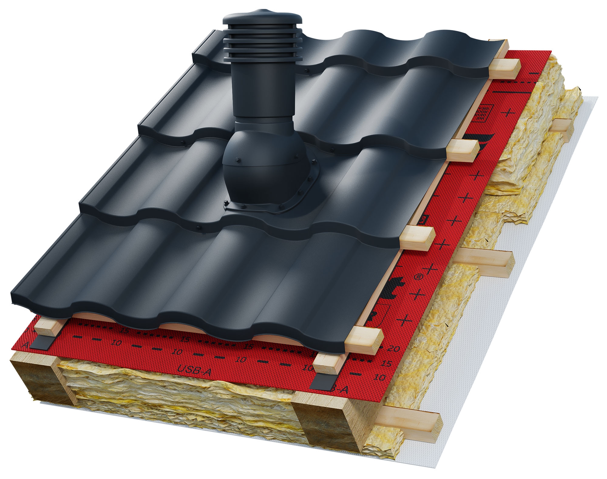 Усовершенствованный вентиляционный выход Eurovent® VENTOS X B26 (Нордо)с вентиляционным сечением 170 мм и диаметром 150 мм. Изготовлен из высококачественной пластмассы. Имеет антиконденсатную систему. Профилированное основание предотвращает попадание дождевой воды. Регулировка угла наклона от 5 ° до 45 °. Имеет основание для крепления вытяжной трубы на металлическую черепицу с тиснением W35. Доступен в нескольких самых популярных цветовых вариантах RAL (9005, 7024, 8017, 8019).