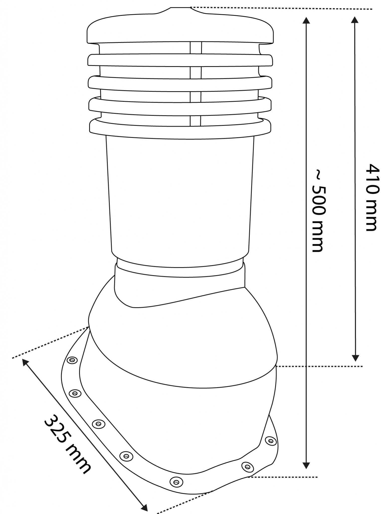 Усовершенствованный вентиляционный выход Eurovent VENTOS X F22 с вентиляционным сечением 170 мм и диаметром 150 мм. Изготовлен из высококачественной пластмассы. Имеет антиконденсатную систему, которая выводит конденсат за пределы крыши. Профилированное основание предотвращает попадание дождевой воды. Регулировка угла наклона от 5 ° до 45 °. Имеет основание для крепления вытяжной трубы на металлочерепицу с тиснением F22. Доступен в следующих самых популярных цветовых вариантах RAL: 9005, 7024, 8017, 8019.