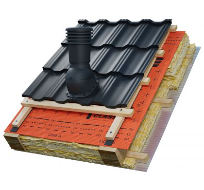 Усовершенствованный вентиляционный выход Eurovent VENTOS X G18 с вентиляционным сечением 170 мм и диаметром 150 мм. Изготовлен из высококачественной пластмассы. Имеет антиконденсатную систему, которая выводит конденсат за пределы крыши. Профилированное основание предотвращает попадание дождевой воды. Регулировка угла наклона от 5 ° до 45 °. Имеет основание для крепления вытяжной трубы на металлочерепицу с тиснением G18. Доступен в следующих самых популярных цветовых вариантах RAL: 9005, 7024, 8017, 8019
