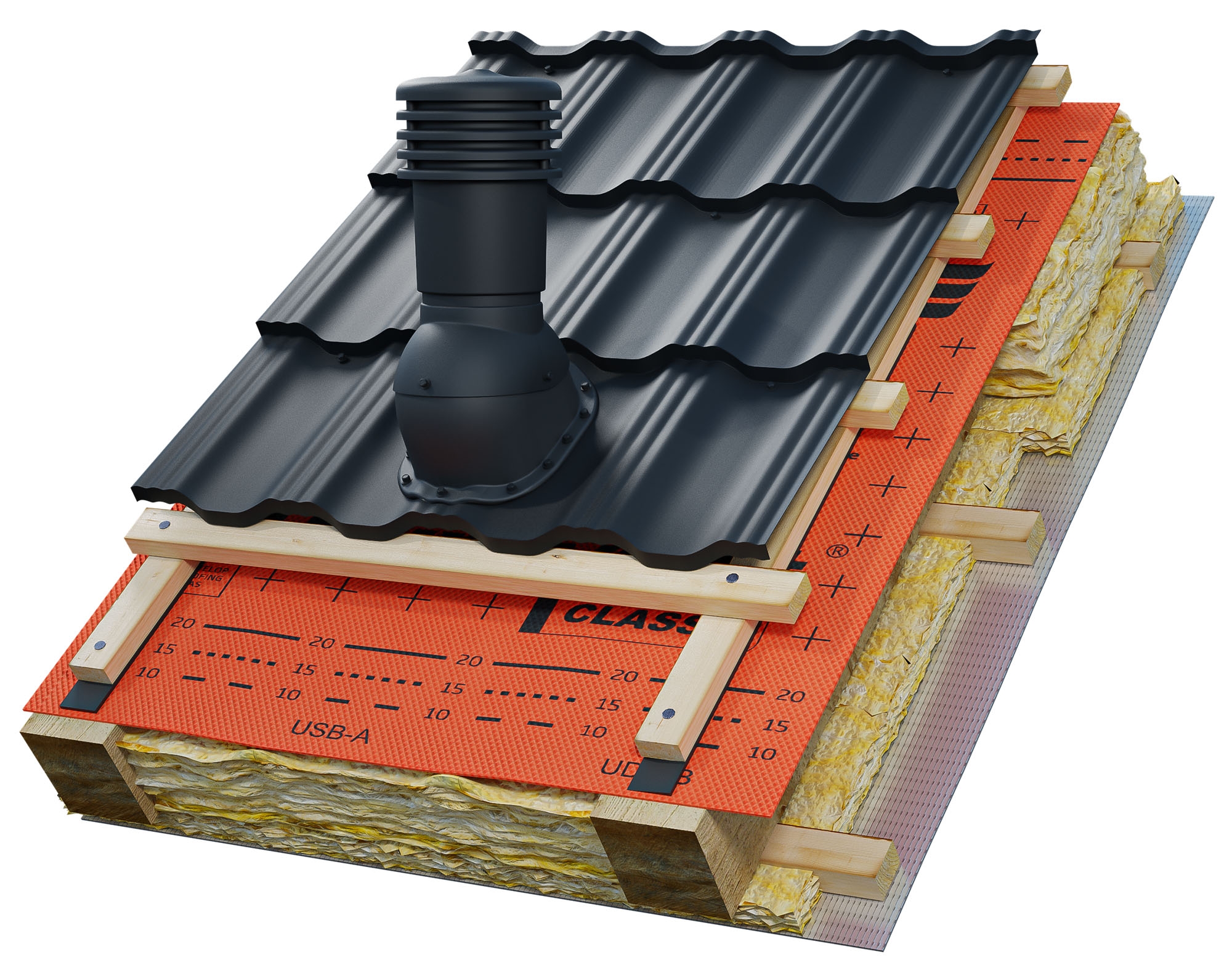 Усовершенствованный вентиляционный выход Eurovent VENTOS X G18 с вентиляционным сечением 170 мм и диаметром 150 мм. Изготовлен из высококачественной пластмассы. Имеет антиконденсатную систему, которая выводит конденсат за пределы крыши. Профилированное основание предотвращает попадание дождевой воды. Регулировка угла наклона от 5 ° до 45 °. Имеет основание для крепления вытяжной трубы на металлочерепицу с тиснением G18. Доступен в следующих самых популярных цветовых вариантах RAL: 9005, 7024, 8017, 8019