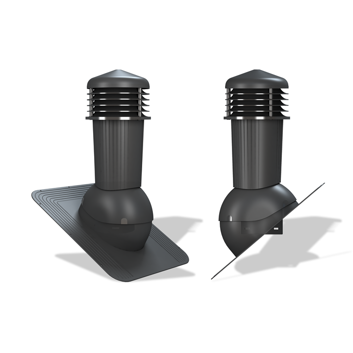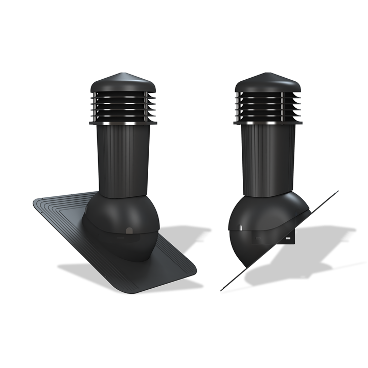 Комплект вентиляционного выхода с отводом конденсата для кровли из гибкой битумной черепицы (при монтаже). В конструкции вентвыхода предусмотрены специальные каналы для отвода конденсата на кровельное покрытие.