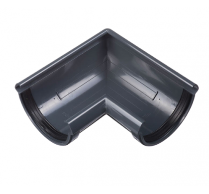 Döcke LUX Угловой элемент 90˚ устанавливается как на внешних, так и на внутренних углах кровли и предназначен для соединения желобов под углом 90˚ в целях изменения направления движения воды.