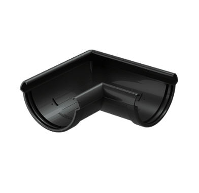 Döcke LUX Угловой элемент 90˚ устанавливается как на внешних, так и на внутренних углах кровли и предназначен для соединения желобов под углом 90˚ в целях изменения направления движения воды.