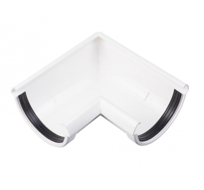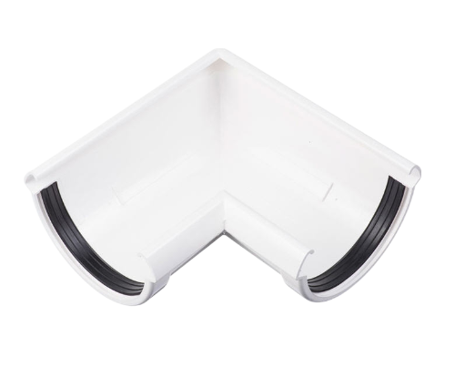 Döcke LUX Угловой элемент 90˚ устанавливается как на внешних, так и на внутренних углах кровли и предназначен для соединения желобов под углом 90˚ в целях изменения направления движения воды.